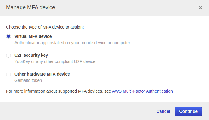 Back to the Security Status. First thing to resolve, is to activate Multi Factor Authentication on your Root account. We will do so by means of an Authenticator App on our mobile device.