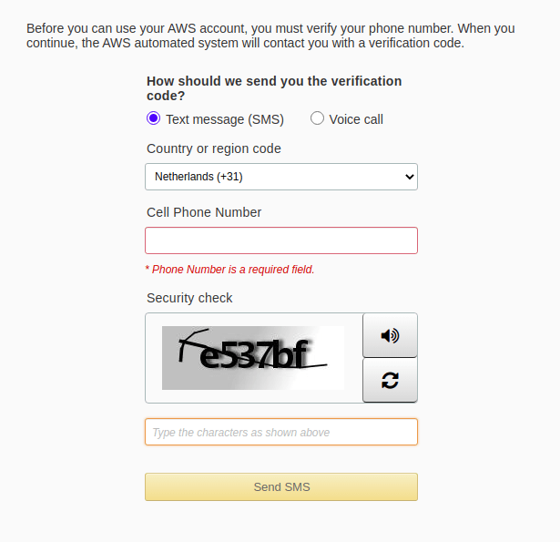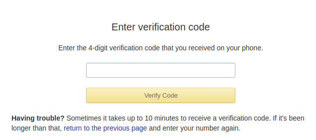 After clicking the Send SMS button, a verification code is received which needs to be entered.