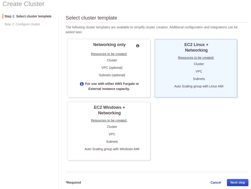 In step 1, choose EC2 Linux + Networking and click the Next step button.