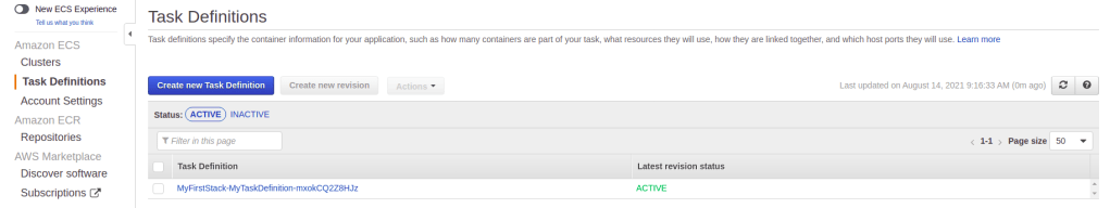 Navigate to the ECS service and click Task Definitions in the left menu. Verify whether the task definition has been created.