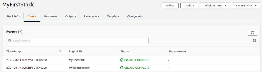 Cleaning up the resources is fairly easy now. Navigate to the Stack and click the Delete button. The progress of deletion can be tracked in the Events tab. This will take some minutes, but the good news is, that no manual deletion of resources must be done. Everything which has been created with the template is automatically removed.