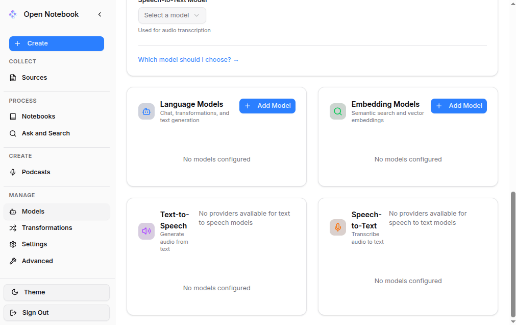 Navigate in the left menu to Models, scroll down and click Language Models – Add Model.