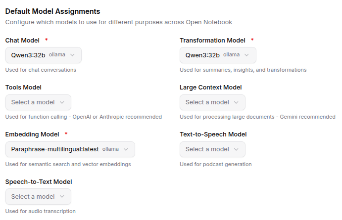 Scroll up again to the Default Model Assignments section and fill in the models.